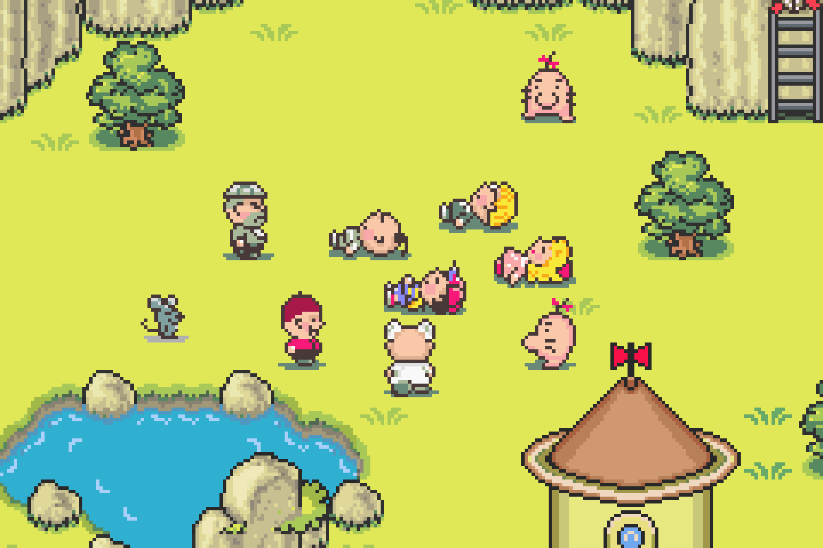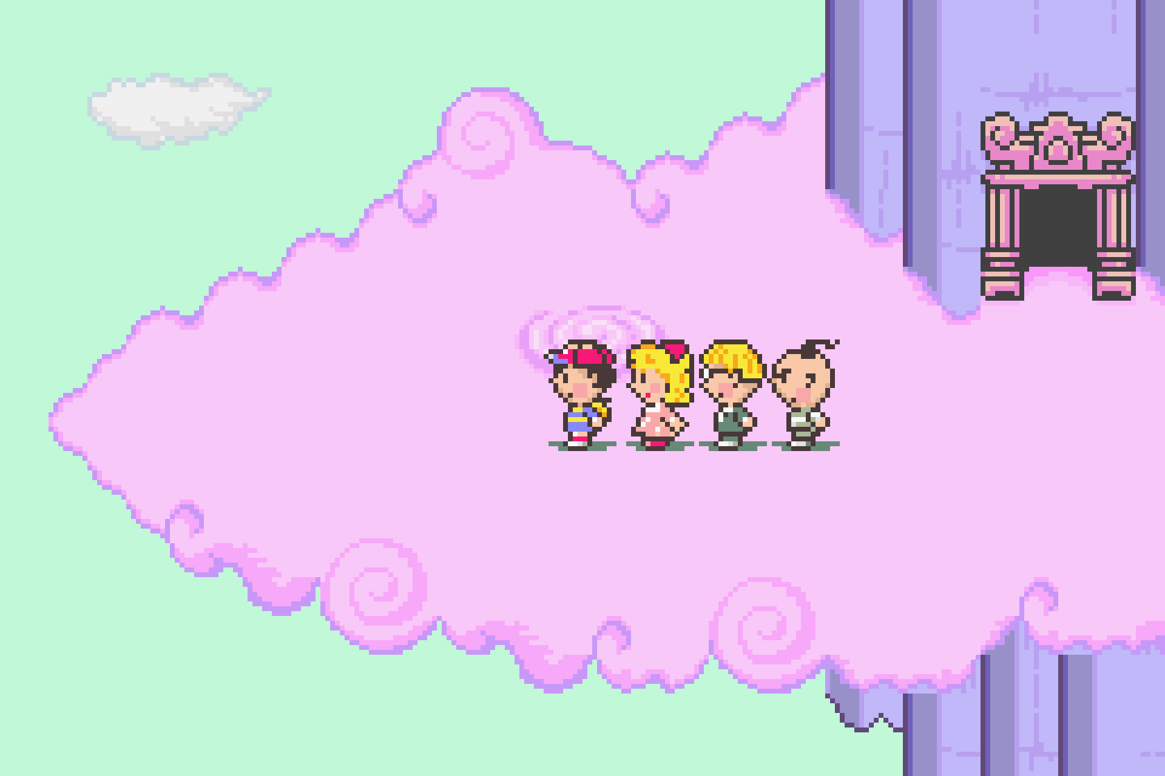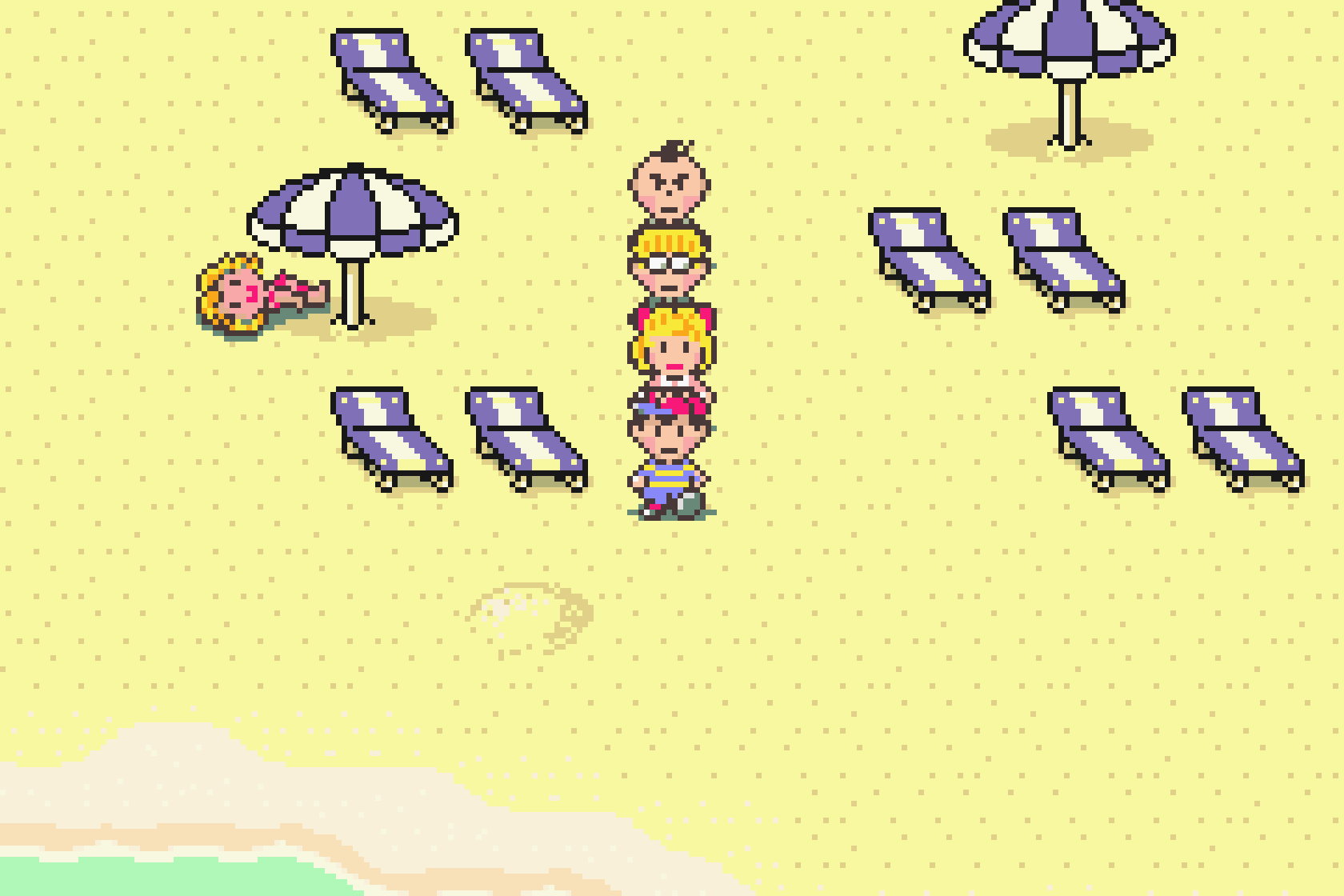 通关《Mother 2》,一句话概括就是:精致细腻的像素美术,独一无二的流程体验。1994年的游戏,就算放到现在也丝毫不过时。像素风格构建的人物和场景都令人印象深刻,城市中的街道和各式建筑,还有Summers城放着躺椅跟遮阳伞的金色沙滩。而且随着剧情的推进,美术风格也会发生变化,比如从酒吧的吧台进入幻境空间,背景变成了纯黑,建筑场景变成了类似霓虹灯的线条特效,有种另类的电子浪漫。还有让部落的人“克服害羞”之后,进入到地底世界后,人物都变成了极小的像素点,借此来展现出恐龙等巨物的巨大体积,无厘头搞笑的同时又似乎也挺合理。