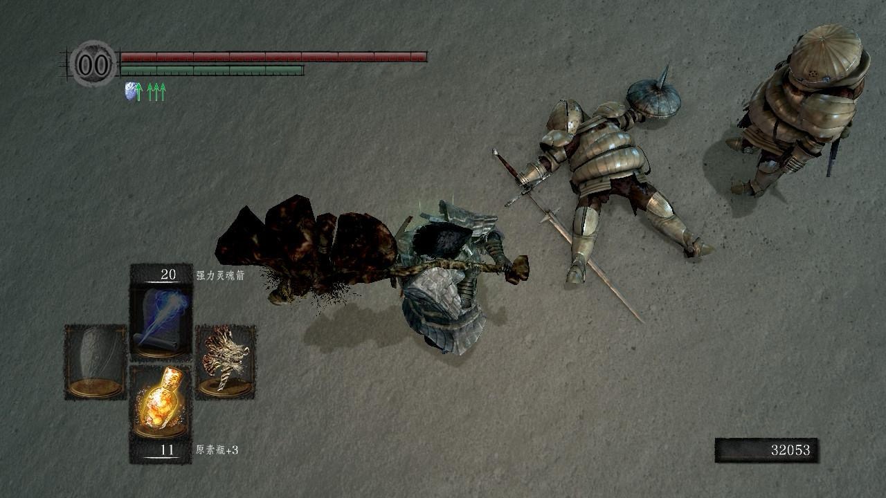 乌拉席露灵庙另一个Boss——骑士亚尔特留斯,这个名字好像贯穿了整个游戏,Boss造型还有过场动画都非常帅气(印象中魂3好像有个类似的Boss,不知道是不是我记错了)。第一次挑战也没想着过,就想先看看招式,结果发现被他砍一下掉不了多少血,就决定站桩双持巨型鸡腿硬刚,他有几招冲刺跟下落劈砍,我算好提前量直接一个R2接下来,没几个来回他就倒了,果然这就是力量猛男的魅力,太解压了。