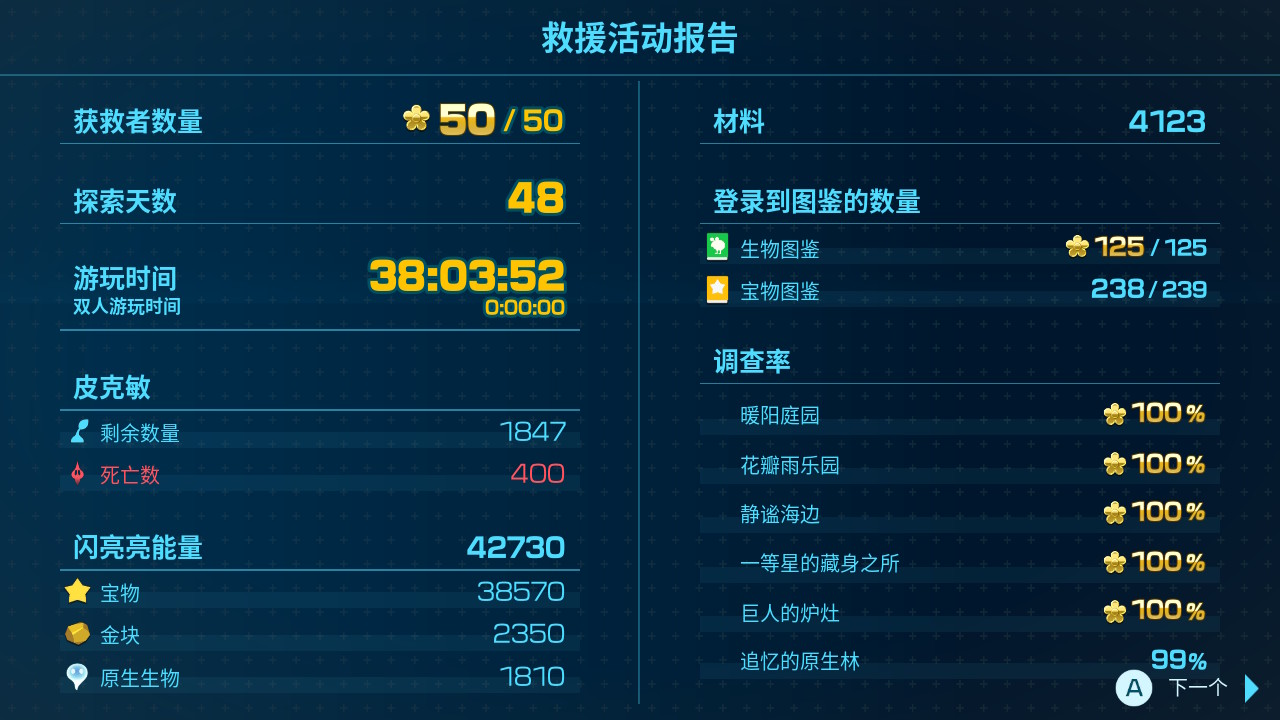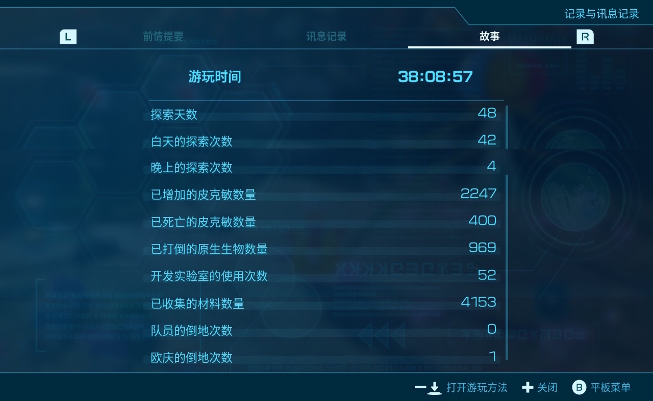 通关本作总共游戏时长38小时,几乎全收集,夜晚的探索体验相对单一,就没怎么玩。其实还有欧力马遇难记没完,所以即使通关了还是有不少内容可供探索的。