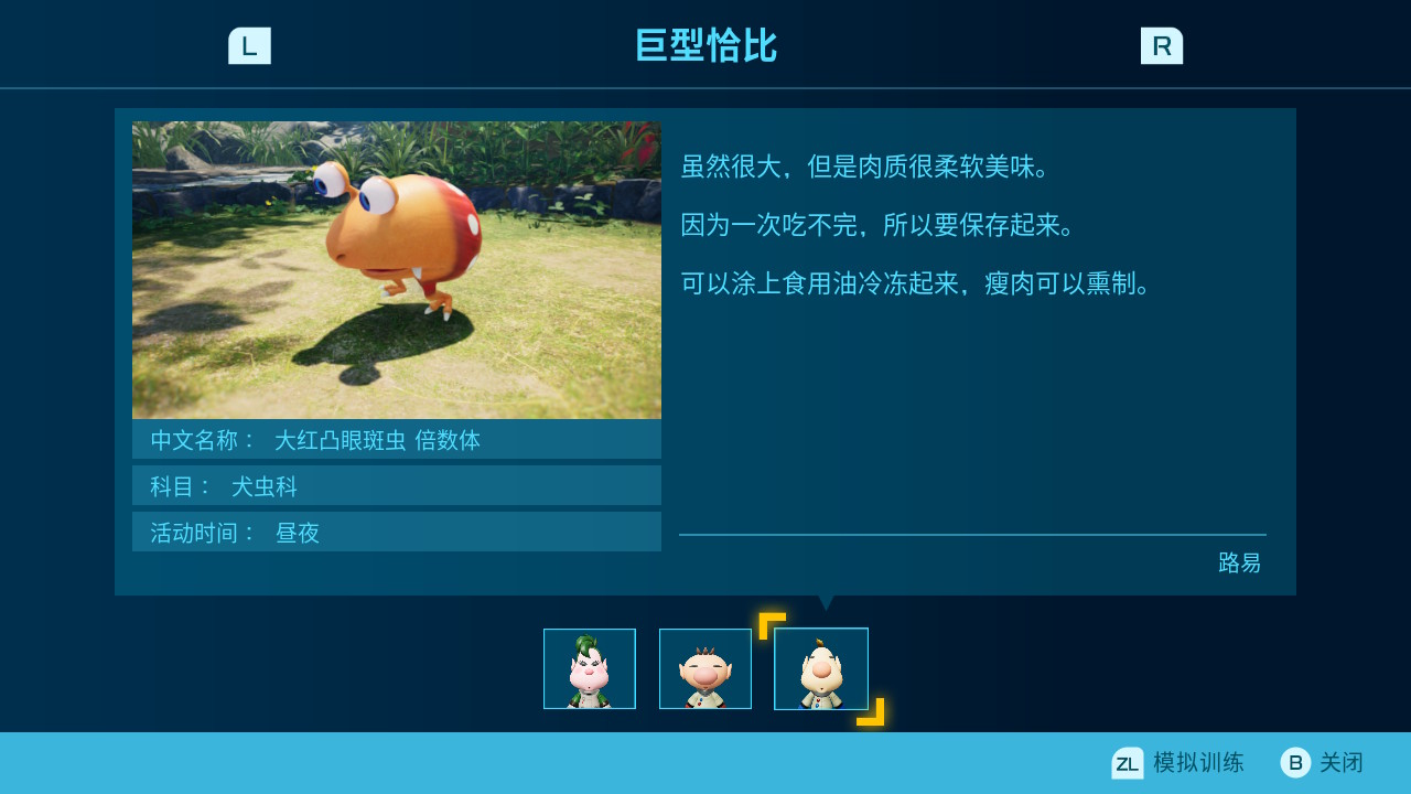 本作的内容量大体现在了很多方面,不仅有多样化的地形地貌、功能各异的皮克敏、丰富的原生生物(包括地下的一些Boss)。而且除了白天的主线探索,还有夜晚控制发光皮克敏的塔防模式,救出欧力马队长后还可以开启欧力马遇难记(回归传统的限时模式),内容量非常大。另外随着救出的队员和治愈的叶子人逐渐增多,也会开启多种支线成就供解锁,宝物、原生生物的图鉴量也不小,每个都包含有欧力马跟路易稀奇古怪的解说。