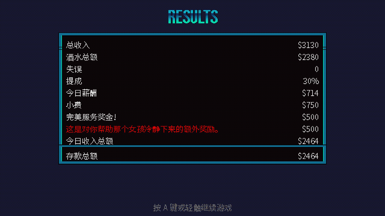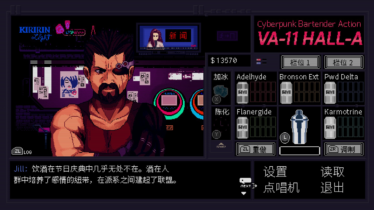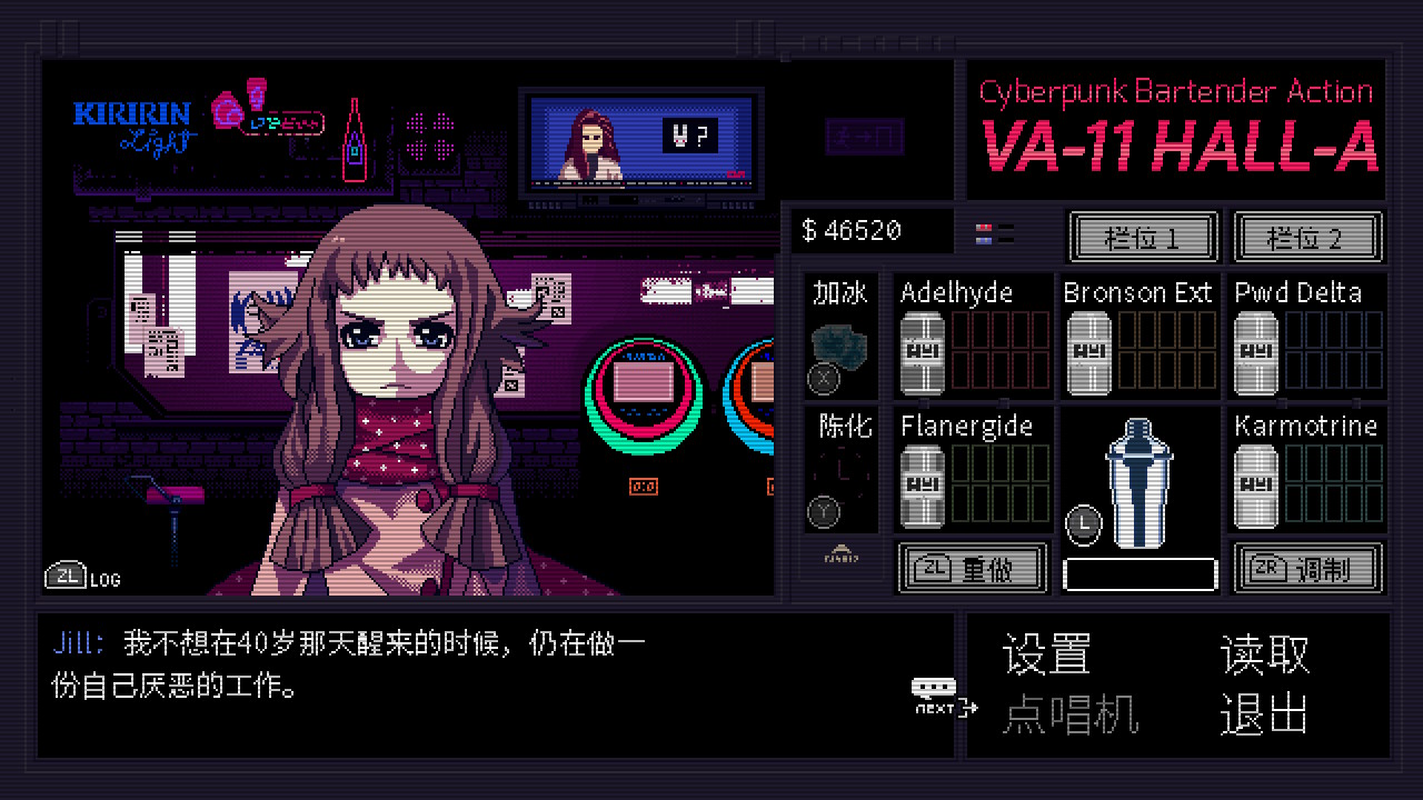 音乐、美术、故事这几个主要的方面都比较优秀。前卫又复古的芯片音乐烘托了赛博朋克的背景;精致的像素画加上扫描线,给人一种老酒馆的感觉;迥异的人物和各色的事件让游戏中的世界更加生动。